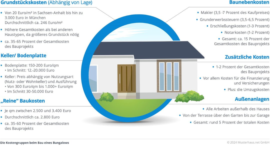 - Förderungen und Eigenleistungen bieten weiteres Sparpotenzial beim Bungalowbau.