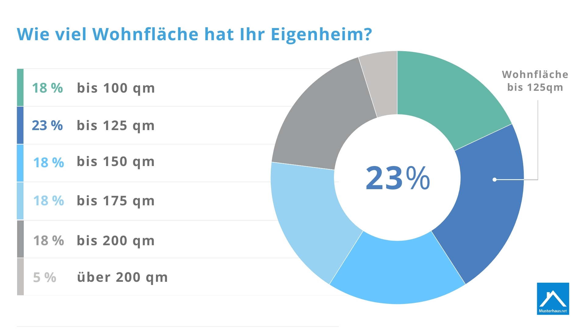 Die neuen Hausherren von 2025 wohnen deutlich bescheidener als die Befragten des Vorjahres. So kommen 41 Prozent mit 125 Quadratmetern aus – 2024 waren es nur 19 Prozent, die sich mit so wenig Platz begnügen mussten. Und während nur 5 Prozent in einen Neubau mit über 200 Quadratmetern eingezogen sind, waren es in der letzten Welle noch doppelt so viele. Die neuen Hausherren backen 2025 also deutlich kleinere Brötchen als die des Vorjahrs.